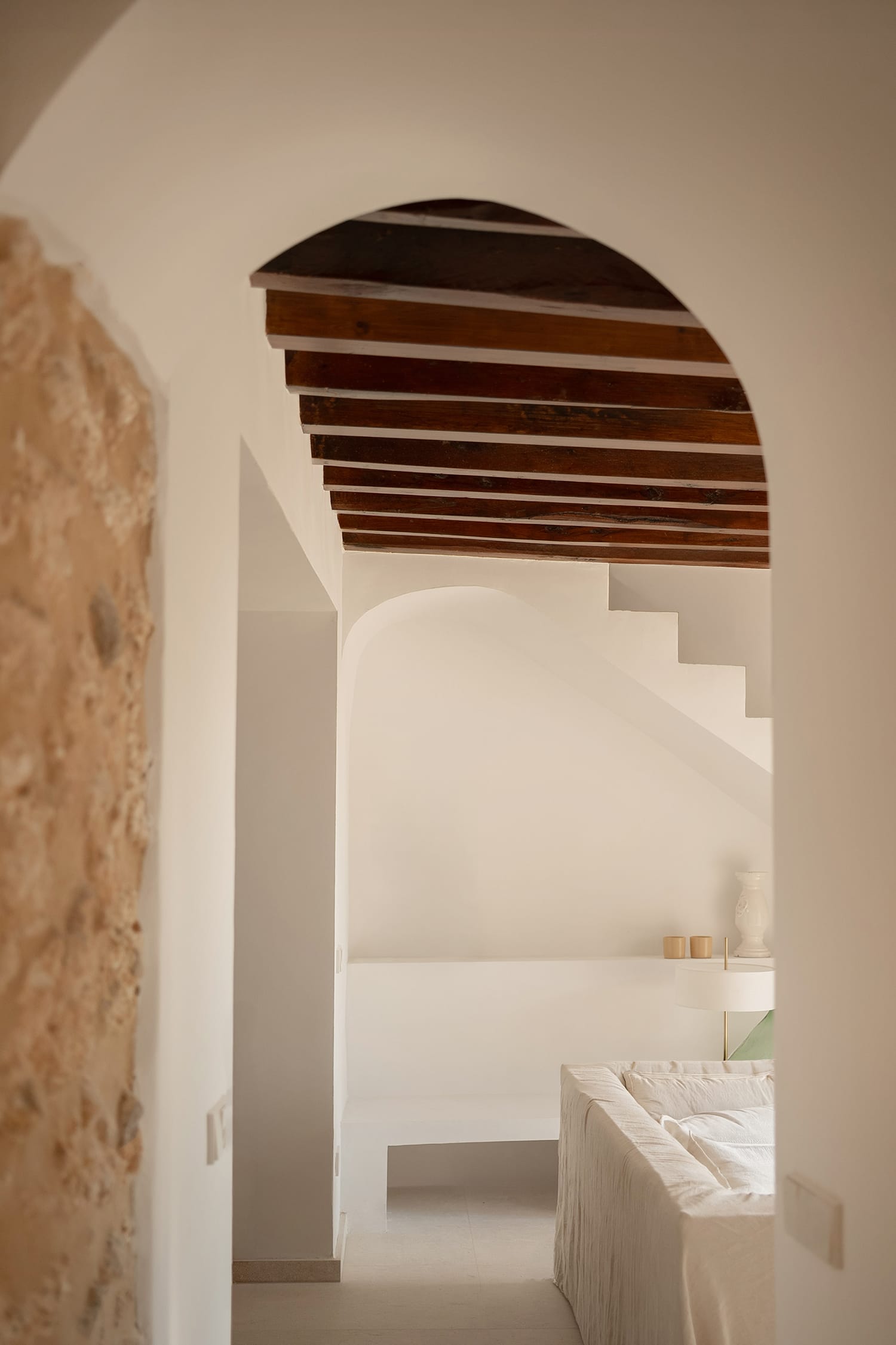 Buscamos no solo mejorar las condiciones de la vivienda, sino también preservar su historia y carácter original. El objetivo es crear un ambiente más amplio y acogedor, permitiendo una mayor interacción entre los habitantes de la casa. Con la eliminación de algunos elementos y la apertura del muro central con un gran arco se consigue que la luz natural se filtre a través de la sala de estar, conectándola con el exterior y ofreciendo unas vistas impresionantes.